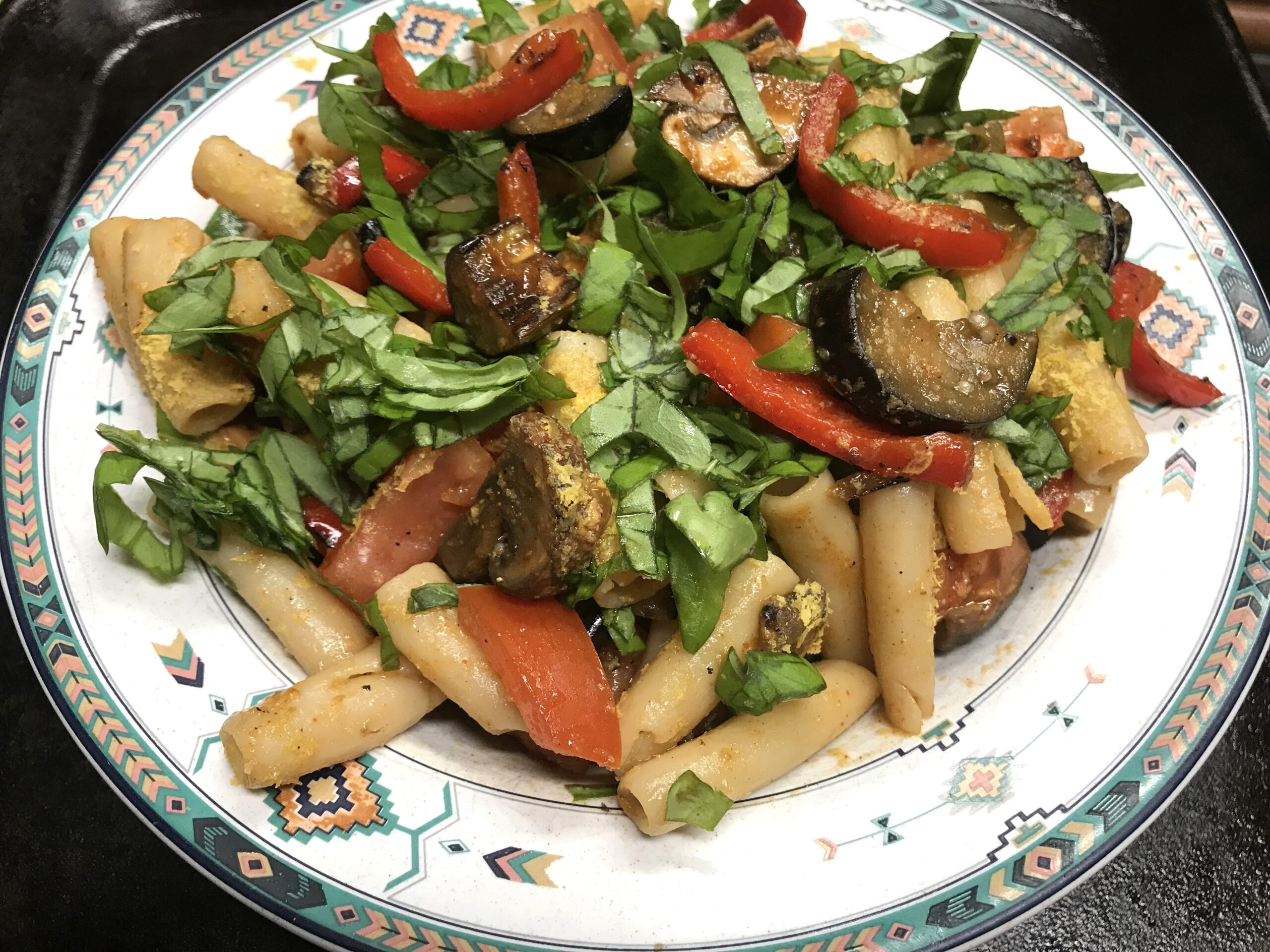 Ziti, Eggplant, Peppers, and Spinach